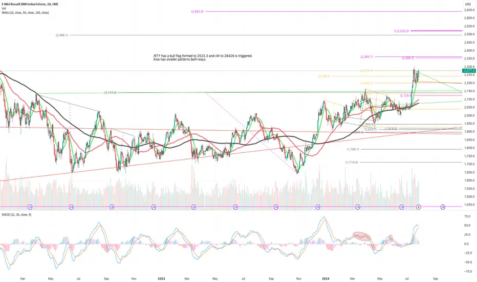 /RTY has a bull flag formed to 2523.3 and vW to 26426 is triggered.