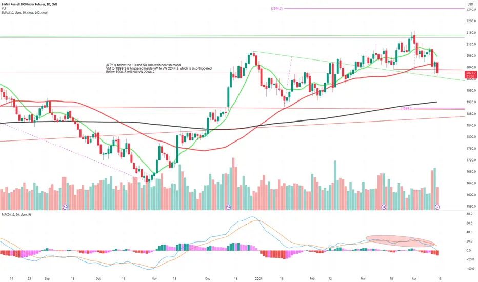 /RTY Is below the 10 and 50 sma with bearish macd.