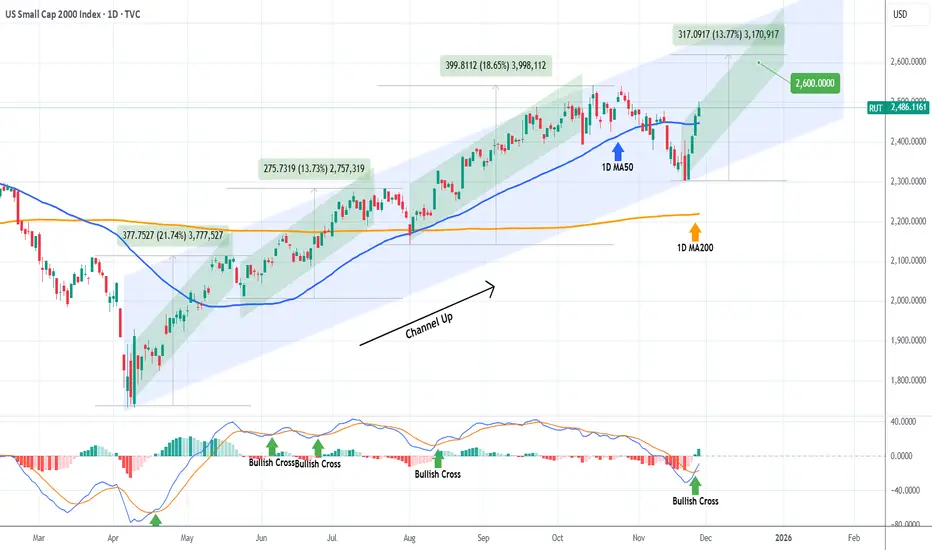 The minimum rise a Bullish Leg had within this pattern has been +13.73%. As a result, we expect the current one to hit at least 2600. Notice also the 1D MACD Bullish Cross, which has always been a confirmation of a new rally.