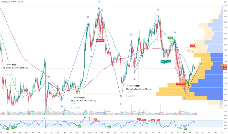 Now analyzing the options chain and the chart patterns of S SentinelOne prior to the earnings report this week,
