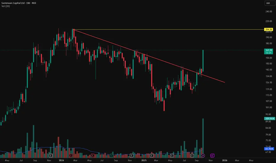 ๐ Sammaan Capital Ltd โ Major Trendline Breakout with Volume Spike ๐