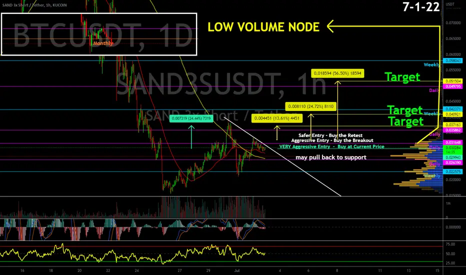 SAND3S currently in downtrend - wait for break of trendline and safest entry is on retest of daily ( 0.031648 )
