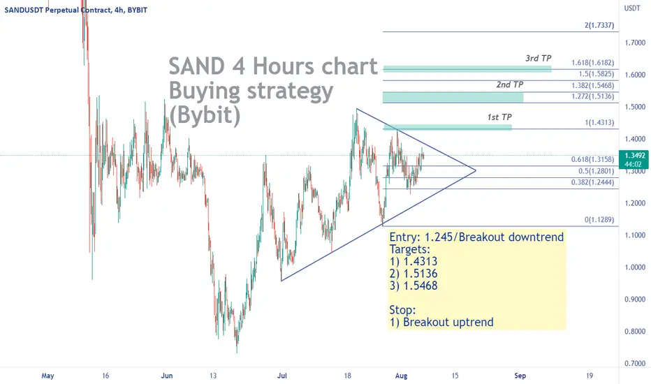SAND is consolidating with lower highs and higher lows in a triangle.