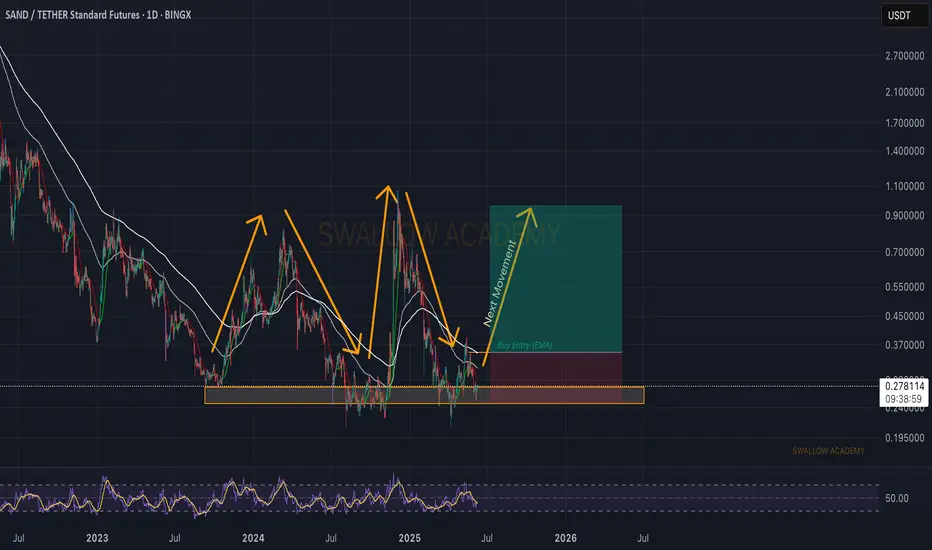 Sand is one of the good long-term coins that caught our attention, where the price is at a local bottom...waiting for a proper breakout from EMAs, which would give us an easy 2.5x on the price.