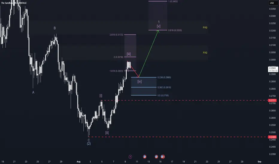 As long as key support levels hold and the lower FVG provides the anticipated reaction, SAND remains well-positioned for a continued advance toward the 0.320–0.340 range, with multiple wave degrees supporting the bullish case.