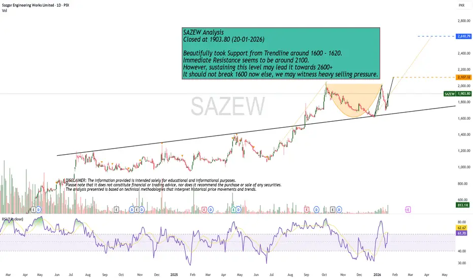 Beautifully took Support from Trendline around 1600 - 1620.