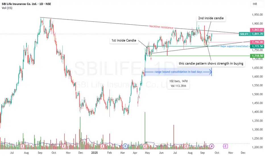 📊 SBI Life – Technical Setup (Refined with 2nd Inside Candle)