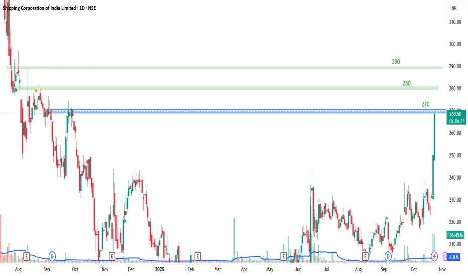 SCIL is showing a good momentum at this level with good volume, if it breaks this level and sustains 270 then we can go long for the target of 280 and 290.