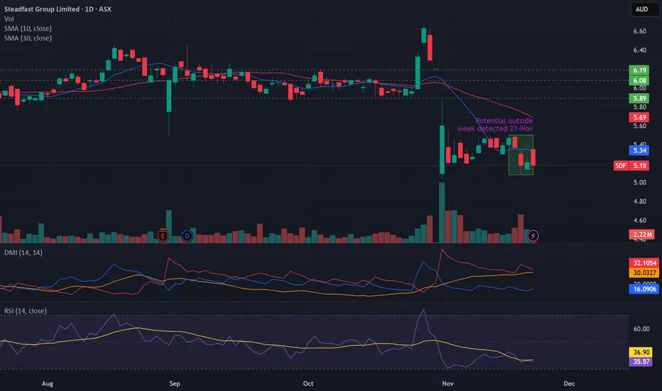 (i) lower share price for SDF below the level of the potential outside week noted on 19th November (i.e.: below the level of $5.08).