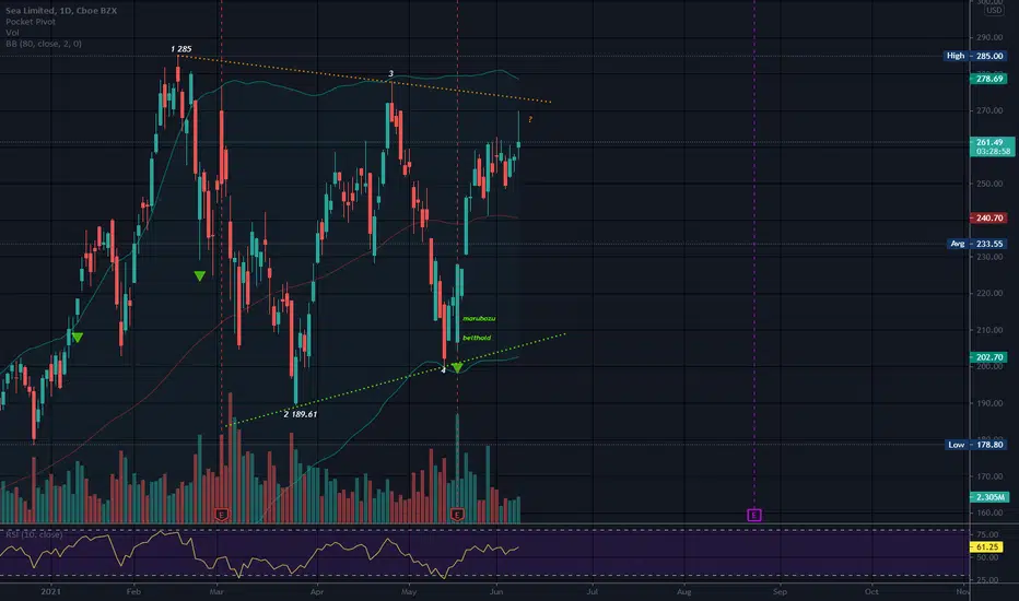 SE appears to be trading in a triangle. This is a neutral pattern until a trendline is broken with a trend in that direction.
