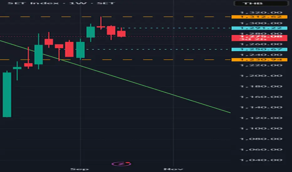 After SET make a new high at 1310, it pullback in the side way zone again.