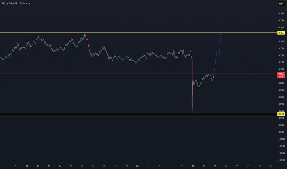 SHELL has formed a clear bottom structure and is now showing early signs of trend recovery after a sharp correction. The price is currently reclaiming strength above the $0.09 level, suggesting a potential shift in short-term momentum.