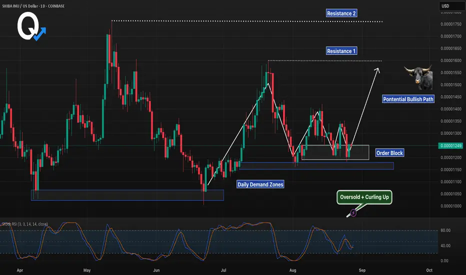 SHIB is consolidating around a key daily order block, sitting just above prior demand zones. This area has acted as a strong base for previous rallies, making it a critical support to watch.