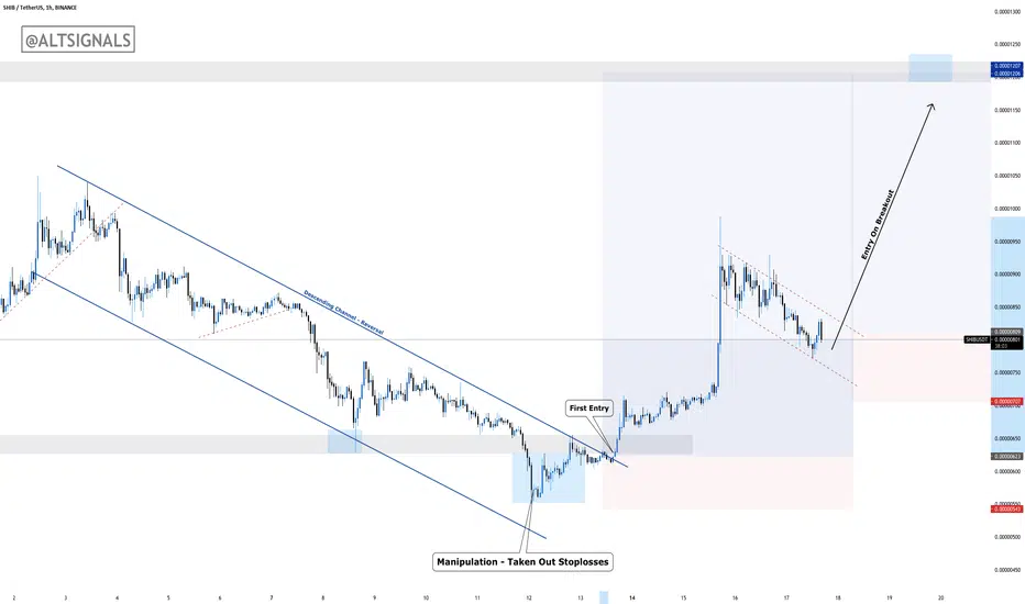 In our last analysis of SHIBUSDT, we were waiting for the breakout of the descending channel. Price dumped a little before breaking out. This is why it's really important to wait for confirmation via a breakout. Price pushed up 57% from the breakout!