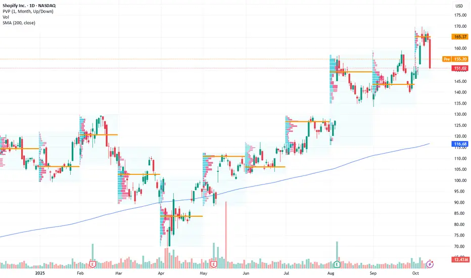 Shopify’s stock price has displayed steady upward momentum over the last month, appreciating over 8% from its September lows of approximately $139 per share. This price gain reflects renewed investor confidence following Shopify’s recently released Q3 2025 earnings results. Positive earnings surprises and a better-than-expected guidance for annual revenue growth helped sustain buying pressure as institutional investors piled back into Shopify. The $151.02 level represents a minor breakout above its 50-day moving average, signaling potential room for higher gains.