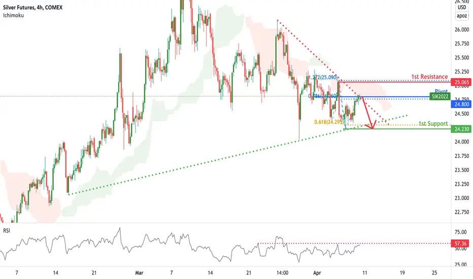 Prices are consolidating in a triangle pattern. We see the potential for a dip from our 1st Resistance at 25.065 in line with 127.2% Fibonacci Projection towards our 1st support at 61.8% Fibonacci Projection. RSI is at levels where dips previously occurred.