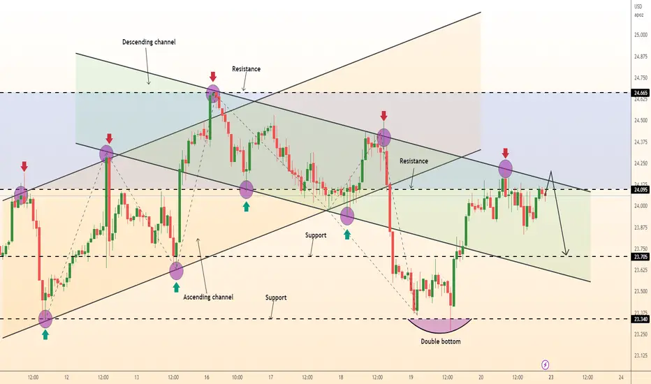 Silver is consolidating at resistance on the 4H, but it has recently dropped below it.