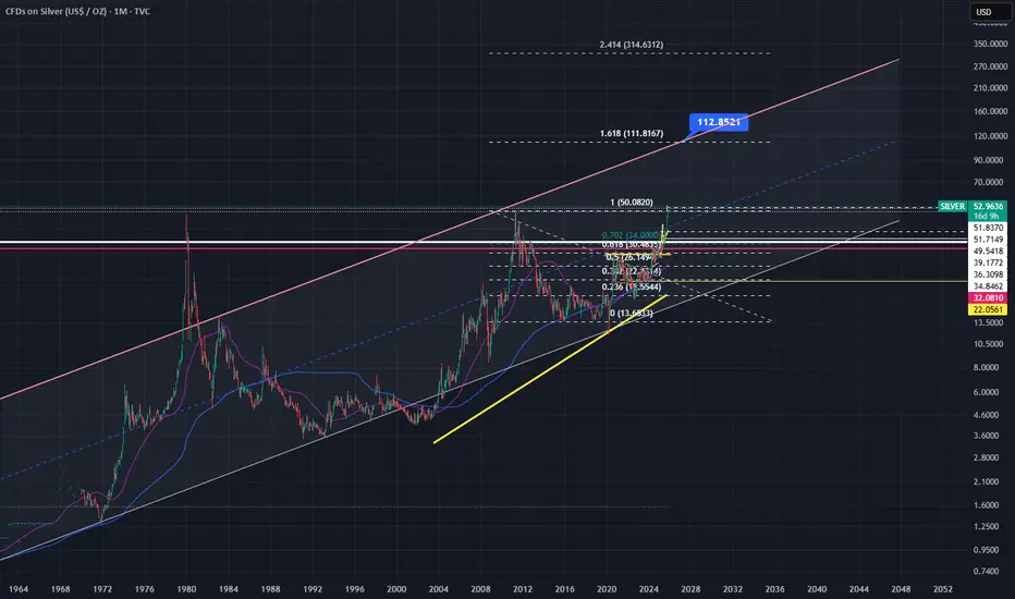 Could silver be headed to the 1.618 fib extension which also coincides with upper channel trend line?