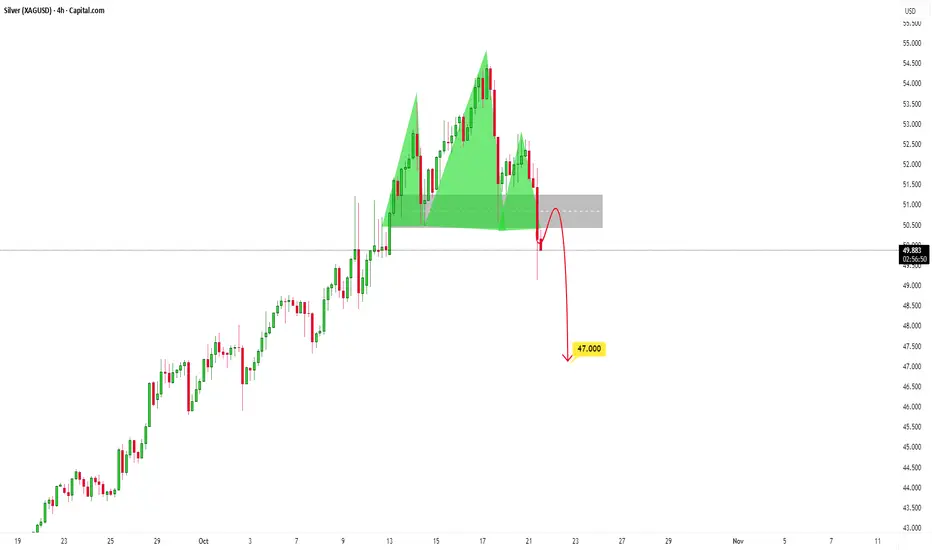 Once the neckline broke, it confirmed that sellers had taken control. A retest of the neckline could now serve as a perfect short entry point, anticipating a move toward around 47.000.