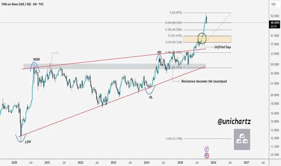At first, Silver faced strong rejection from the resistance zone, but once it finally broke out, the price came back to retest that same resistance — which then turned into a powerful launchpad, sending prices to new all-time highs.