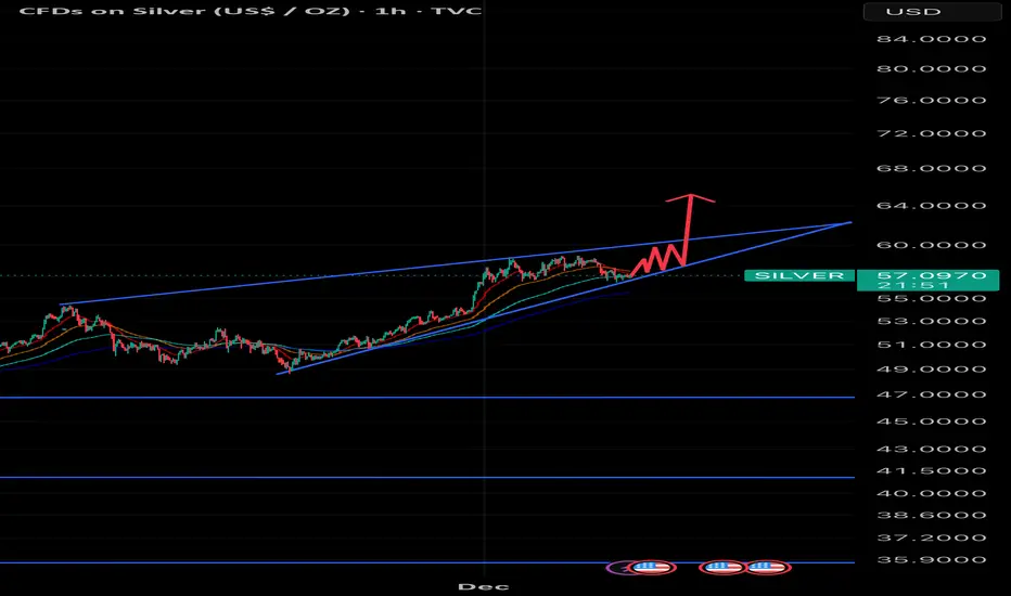 Looks like this could be a good set up for silver right now for ATH. Looking for 65 once fomo starts after break out above 60 levels.