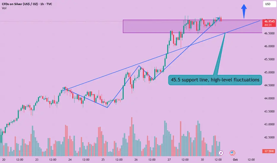 International silver prices continue to rise, with no prediction of a peak. Currently, it has reached a new high of 47.2. Silver is on the verge of a major bull market. The decade-long dormancy of silver bulls is only accumulating strength for the bulls in the future. In the short term, strong fluctuations at high levels are expected. Maintain a low-to-long strategy and avoid chasing gains.