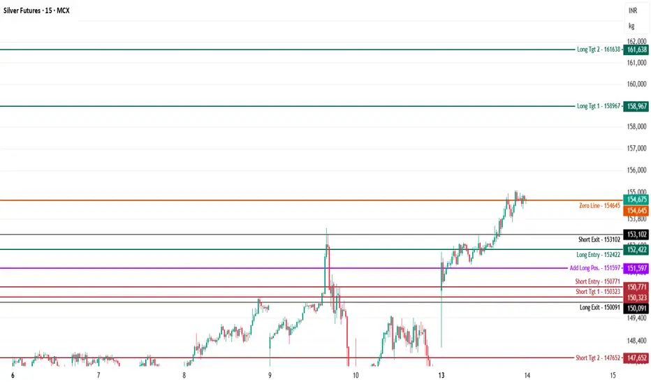 Silver is currently trading near 154,675, consolidating just above the zero line (154,645) after a strong impulsive move from the recent lows.