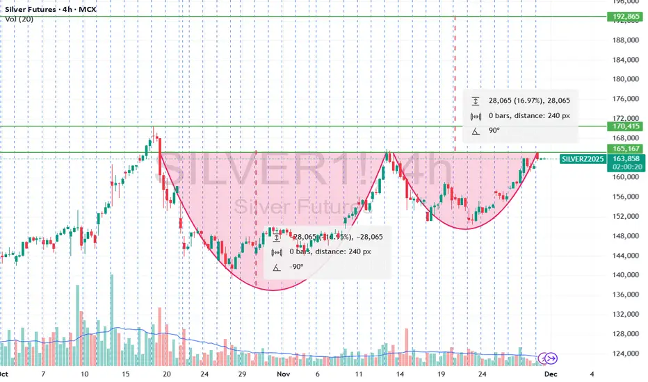 ✔ Neckline (Major Resistance): ~165,000–170,400