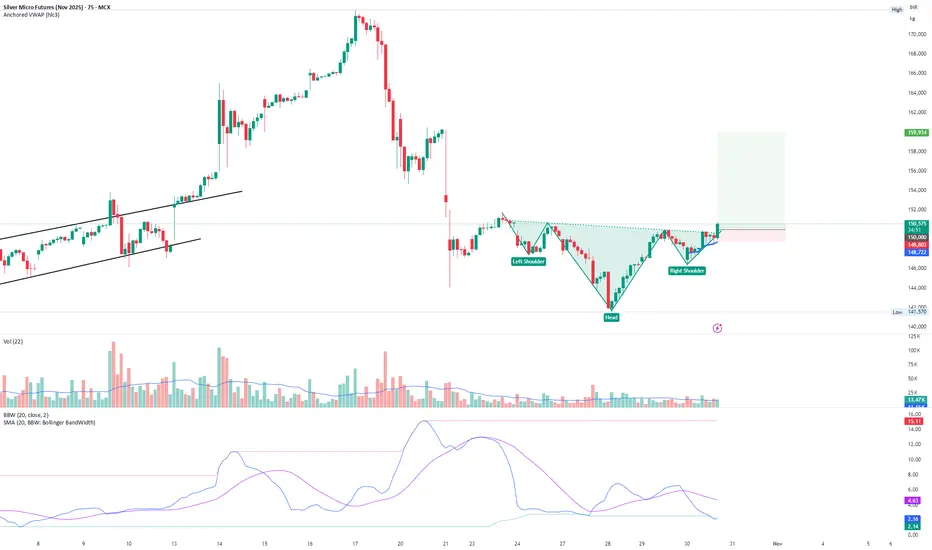 Inverse head and shoulders breakout is in progress in silver micro futures.