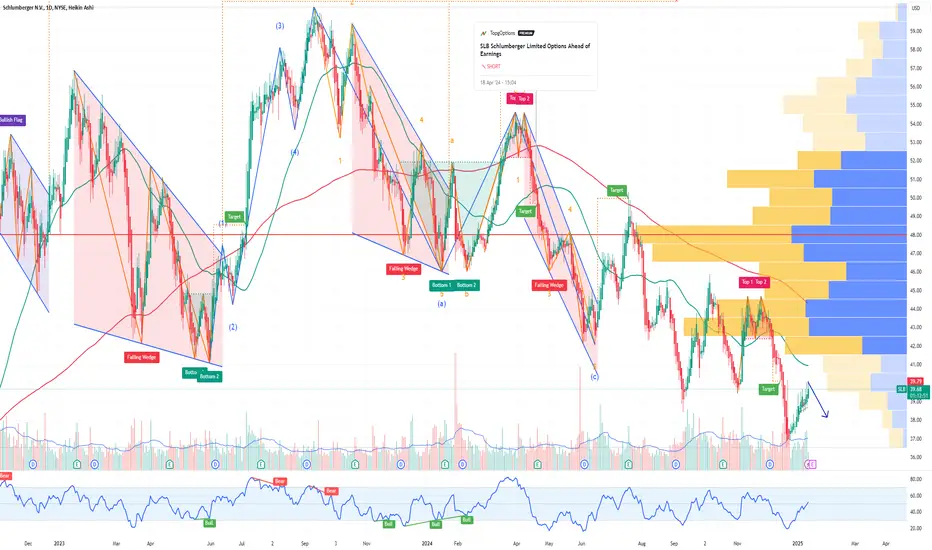 Now analyzing the options chain and the chart patterns of SLB Schlumberger prior to the earnings report this week,
