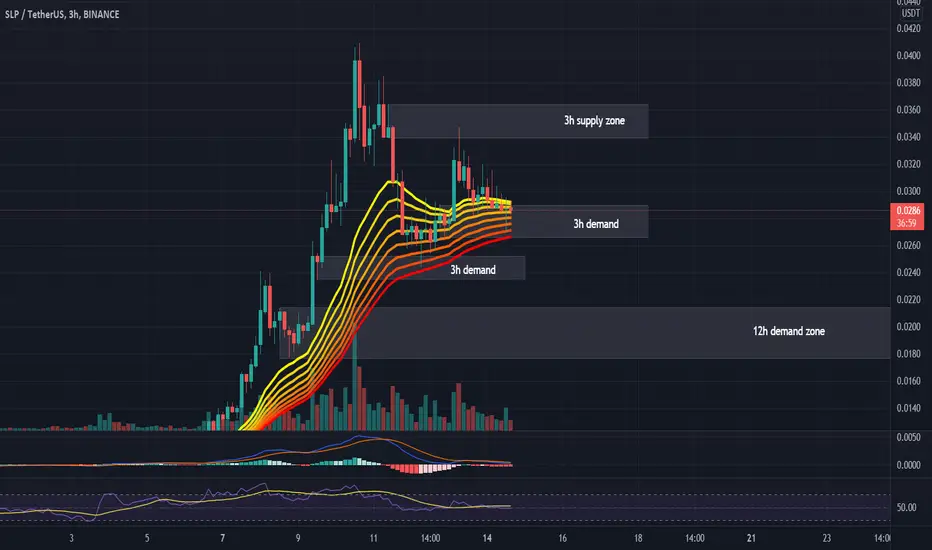Price is respecting perfectly all orderblocks as it recently got rejected from the 3h supply zone at $0.345 and it is currently bouncing off the 3h demand zone at $0.28. MACD is showing some bearish weakness, RSI and EMAs are neutral. If price breaks below this 3h demand and closes below $0.26, then it would be diving all the way down towards the 12h demand zone at $0.21 before seeing a bullish reversal. It needs to close above the high at $0.32 in order to turn bullish again.