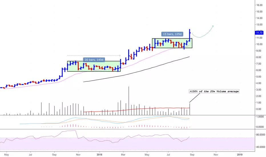 A Supplier of the well known milk and infant formula brand A2milk. All time high breakout on expanding volume replicating an earlier base. Any pullbacks are likely to be supported with underlying sector and stock strength.