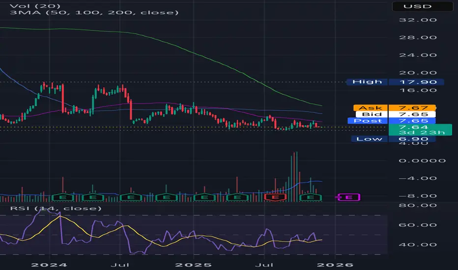 To me, it seems like market is pessimistic about SNAP, but at the same time, waiting for a turnaround and any excuse to buy. If there is no excuse to buy, sellers might push lower to 6.90, if it breaks below, we might see further downside.