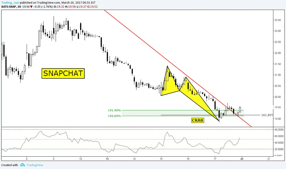 Snapchat after the ipo entered in bearish frenzy mode, now that structure is broken, for long-term trades it can be a nice engagement. Bullish Crab also at 161% extension already working as it should...