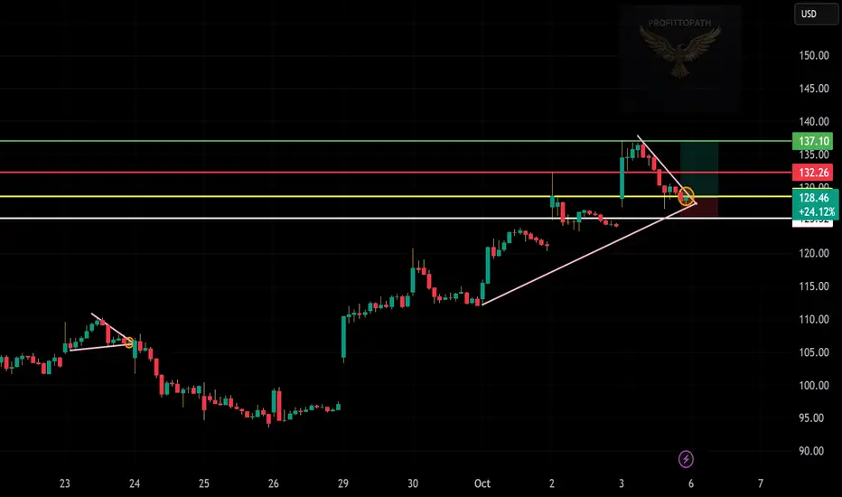 Entry zone: around 128.4–129.0 (near trendline support).