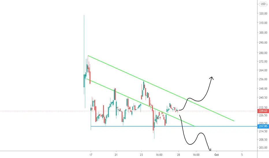 Because lack of data, Im not sure if the triangle is going to be bullish or bearish. but whenever the triangle chart pattern breaks we will witness a big move on the chart.