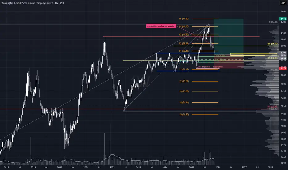 The second zone (marked on the chart) is more significant: it lines up with the yearly pivot, the EQ of the monthly demand wick, and a key 50% level. If that zone gives way, we’re likely looking at a deeper reaccumulation phase.