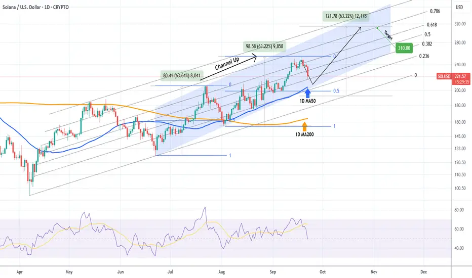 Solana (SOLUSD) has been trading within a Channel Up since the June 22 Low, which goes even further back on a Fibonacci Channel Up started on the April 07 market bottom.