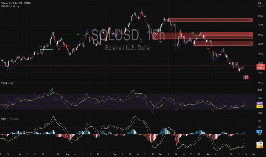 SOL rejected cleanly from stacked supply zones above 200 and confirmed a bearish market structure break on the 12H.