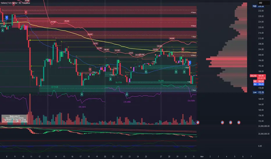 Solana has successfully rebounded from the key demand pocket at $178–$181, where aggressive buyers defended the prior 4H swing low and swept liquidity below the rising trendline. This bounce confirms continued smart-money defense of structure, following a multi-day corrective pullback after distributing into the $203–$208 supply band. Price is now stabilizing above the micro accumulation shelf at $183–$186, with intraday candles showing higher-lows and early bullish momentum returning, supported by volume absorption on each dip into the mid-$180s. As long as SOL holds the $181 reclaim, this remains a continuation accumulation phase, not a trend breakdown.