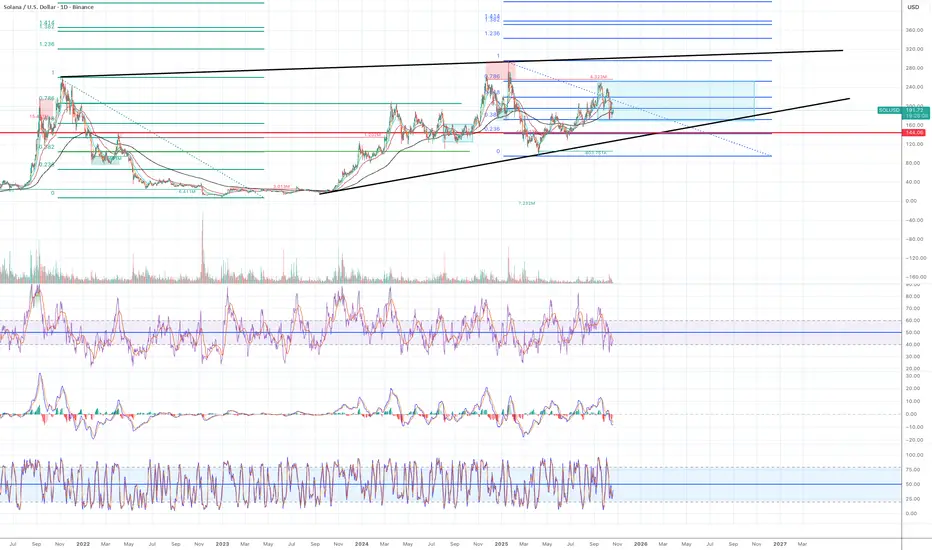 2) The price eventually broke above 0.786 and 0.1 and reached historical ATH at $293 in Jan 2025 and started a sharp decline to $95, which is roughly Fib 0.382 area.