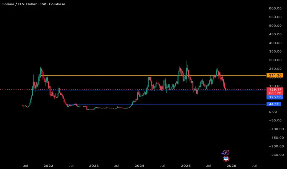 $44.15: This is the big, deep support from the 2022–2023 accumulation base. I’m not calling for this immediately, but structurally there’s a lot of empty space between $125 and $44. If the macro rolls over and SOL can’t defend the mid-range, we could see a slow bleed or capitulation wick toward this zone.