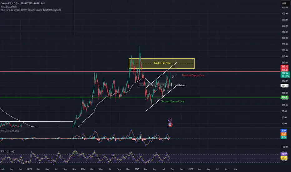 Golden Fib Zone: $210–$240 — major resistance cluster and potential final hurdle before ATH.