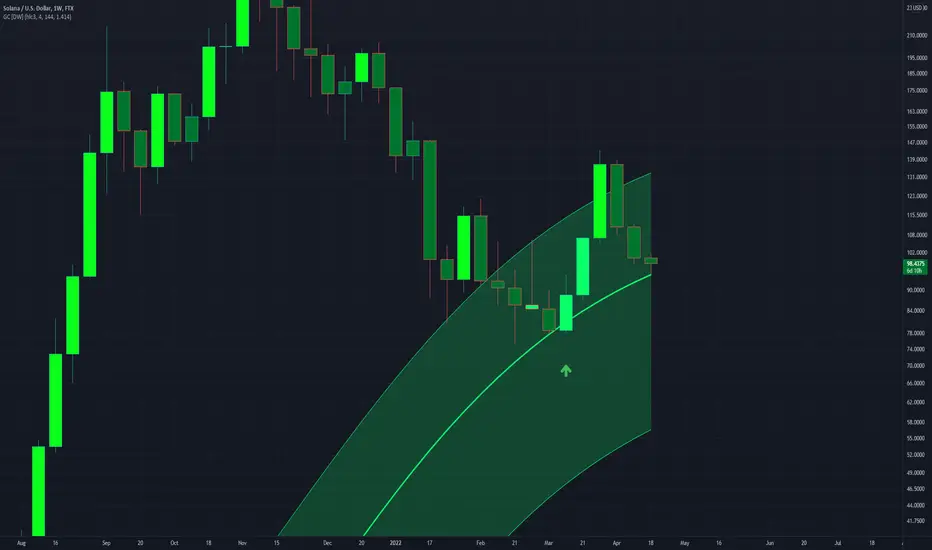SOLUSD is retesting the middle band of the Gaussian Channel indicator