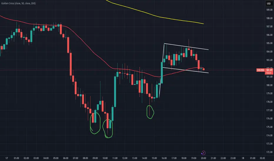 Observed a bullish reversal pattern, followed by a bullish flag pattern. We made a double bottom today. I think this might be the actual dip that can be bought. Wondering if we remain above 180$ for a longer time since there is quite some fear on the market..