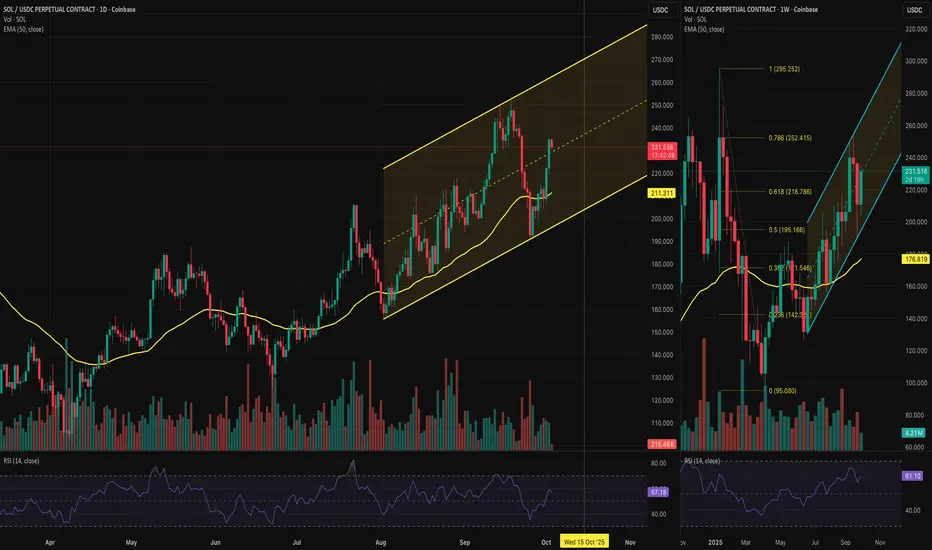 For now, I’m aiming for $275, which matches the upper side of the channel, and I’ll be looking for a rebound on the EMA50 or the lower side of the daily channel. Exciting times for Solana. Now it’s just about waiting, which is always the hardest part of trading. Stay sharp, traders!