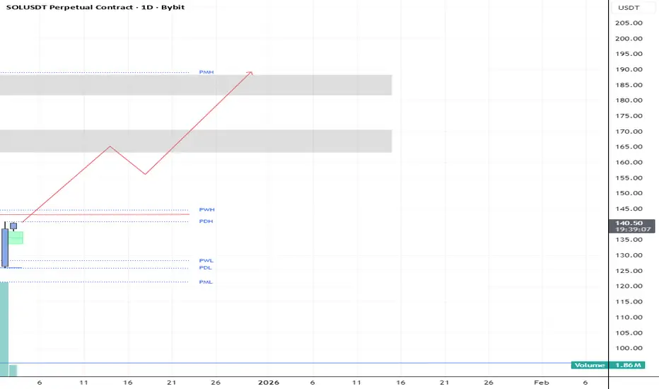 PWH / PMH: Around 175–185 USDT – long-term bullish objective.