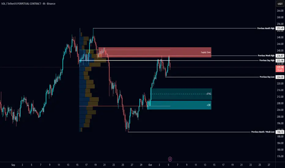 SOL tapped the Supply Zone and swept previous week’s high for liquidity 👀