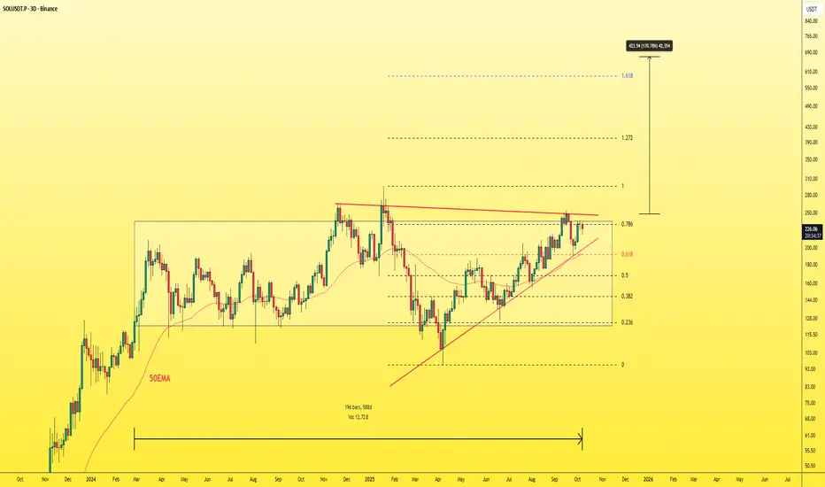 The 3-day chart looks insanely bullish — the coin has been consolidating for 588 days, almost 20 months.