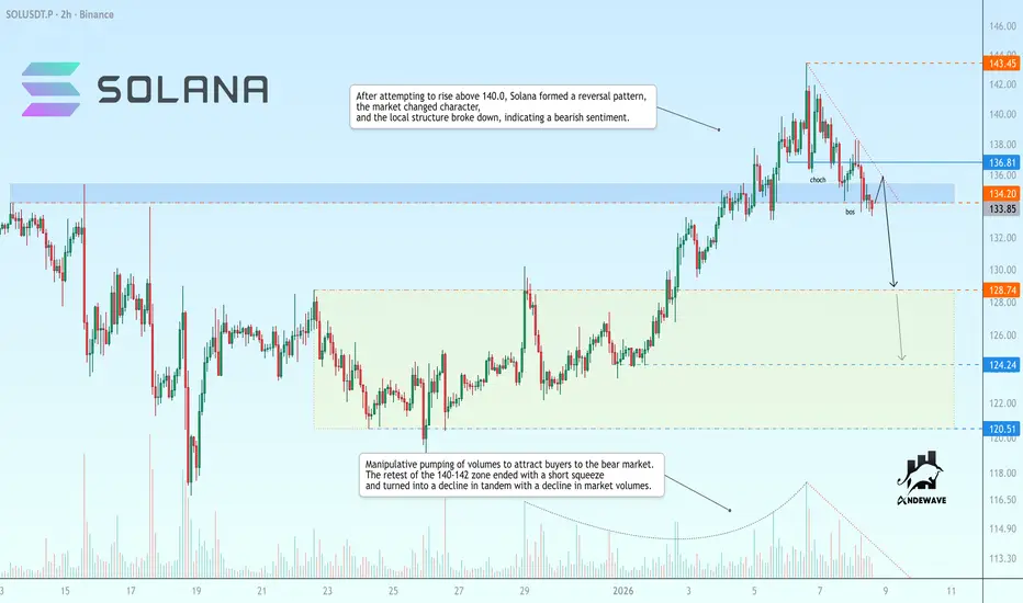 After attempting to rise above 140.0, Solana formed a reversal pattern, the market changed character, and the local structure broke down, indicating a bearish sentiment.